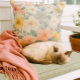 Farbenfrohe Blüten auf Hellgrau Kissen