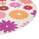 Farbenfrohes Blumenmuster in Gelb, Orange, Rosa, Lila und Rot auf cremefarbenem Hintergrund.