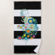 Farbenfrohe Blütenlephäre und schwarz-weiße Streif Strandtuch
