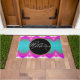 Bringen Sie eine helle und stilvolle Stimmung in Ihren Begrüßungsgarten vor der Haustür. Das ist ein wunderschönes illustriertes Muster in Rosa, Grün, Türkisblau und Weiß. Die Mitte hat einen schwarzen Kreis in einem bräunlichen Rahmen mit einem Monogramm mit einem Buchstaben und dem Wort "willkommen". Das ist eine großartige Tür, um Ihre Tür für die Frühlings- oder Sommersaison zu gestalten. Farbenfrohe Boho Monogramed Welcome Doormat Design von Frau_Jade. © 2021 Ms_Jade.
