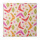 Das sind Boomerangs aus dem Mittelalter mit Sternexplosionen aus Diamanten und Kreisläufen in Orange, Pink, Rot und Grün. Es ist großartig aussehende dekorative Keramik Kachel für Ihre Zuhause