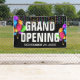 Neues Business Adventure Banner mit schwarzem Hintergrund, farbenfrohen Festkonfetti, Ballons und einer großen Textvorlage, die leicht zu personalisieren ist.