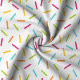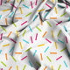 Fügen Sie Ihren Projekten mit diesem lebendigen Süßwassersprinklermuster einen farbenfrohen Schub hinzu! Mit einer spielerischen Auswahl an regenbogenfarbenen Sprinklen, die auf einem knackigen, weißen Hintergrund verteilt sind, ist dieses Design perfekt geeignet, um jedem Schaffen eine lustige, skurrile Touch hinzuzufügen. Ideal für Kinderbekleidung, Party-Dekoration oder festliche Kunsthandwerksprojekte, erweckt dieser Stoff Freude und Kreativität zum Leben. Die lebhaften Farben und das dynamische Muster machen es zu einem Muss für jeden, der ein wenig mehr Freude an seinen Entwürfen möchte.