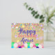 Farbenfrohe Confetti und Balloons glücklich zum Ge Karte
