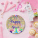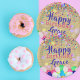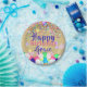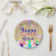 Farbenfrohe Confetti und Balloons glücklich zum Ge Pappteller