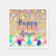 Personalisiertes Geburtstagspapier Serviettendesign mit bunten Konfetti und Ballons auf einem alten Papierhintergrund. Der Text ist vollständig anpassbar.