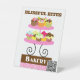 Erleben Sie den Charme Ihrer Bäckerei mit diesem hübsch gestalteten Schild auf dem Sockel! Dieses Schild mit einem zweistufigen Backständer, der mit bunten Kuchen geschmückt ist, verleiht Ihrem Unternehmen eine Touch von Süße. Unterhalb des Standes wird das Wort "BAKERY" hervorgehoben, wodurch eine klare Markendarstellung gewährleistet ist, während oben auf dem Schild der Name Ihrer Bäckerei für eine personalisierte Touch dargestellt wird. Um den Kundenkomfort zu erhöhen, enthält das Zeichen auch einen QR-Code, der einen schnellen Zugriff auf Ihr Menü, Ihre Werbeaktionen oder Ihre Online-Bestellung ermöglicht. Dieses stilvolle und berufliche Display eignet sich ideal für Bäckereien, Dessertstände und Bauer-Märkte und eignet sich hervorragend, um Kunden zu begeistern und Ihre köstlichen Leckereien zu präsentieren.