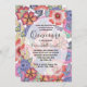 Diese Quinceañera Einladung ist eine atemberaubende Mischung aus Eleganz und Lebendigkeit, die das Wesen dieses Meilenstein-Festes erfassen soll. Der Hintergrund ist mit farbenfrohen, detailreichen Blume und Blätter in lebhaften Rosa-, lila-, Grün- und Orangetönen geschmückt, was eine lebendige und dennoch elegante Atmosphäre schafft. Der Text ist in eleganten Schriftart verschiedener Größen anmutig gestaltet, um wichtige Informationen hervorzuheben. Das Wort "Quinceañera" hebt sich in großen kursiven Buchstaben in der Mitte hervor, was die Bedeutung des Ereignisses unterstreicht. Einzelheiten zu der Veranstaltung, einschließlich Datum, Uhrzeit und Veranstaltungsort, werden nachfolgend in einem klaren und leicht lesbaren Format bereitgestellt. Das Gesamtdesign der Einladung ist auffällig und informativ und macht sie zu einer perfekten Wahl für einen solchen besondere Anlass.