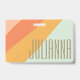 Mit diesem farbenfrohen Abzeichen mit diagonalen Streifen und einer Retro-inspirierten Pastellpalette, die Spaß und beruflich macht, hebt sich dieser Stil ab. Die sanften Farbtöne Minze, Pfirsich, Lavendel und Korallen schaffen ein spielerisches, Vintages Ambiente, das dem Alltag eine persönliche Note verleiht. Ob für Arbeitsveranstaltungen, Konferenzen oder besondere Anlässe, dieses Abzeichen ist vollständig an Ihren Namen oder Titel angepasst und bietet eine einzigartige Mischung aus Funktionalität und Flair. Lass dieses lebendigen Designs eine Touch der Sommerwärme in jedem Ambiente!