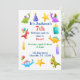 Fun Dinosaurier in Primärfarben schmücken diese Einladung zum Geburtstag