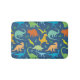 Farbenfrohe Dinosaurier-Silhouette. Tyrannosaurus Rex, Titanosaurier, Triceratop, Raptoren, Ankylosauren, Dino-Birds, Stegosaurus, Apatosaurus, Pteranodon und mehr in einem farbenfrohen Muster in blauem Hintergrund, und Dinosaurier in grün, blau, gelb und orange.