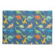 Farbenfrohe Dinosaurier-Silhouette. Tyrannosaurus Rex, Titanosaurier, Triceratop, Raptoren, Ankylosauren, Dino-Birds, Stegosaurus, Apatosaurus, Pteranodon und mehr in einem farbenfrohen Muster in blauem Hintergrund, und Dinosaurier in grün, blau, gelb und orange.