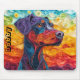 Dieses Mousepad ist ideal für Besitzer und Liebhaber von Doberman. Es zeigt ein farbenfrohes Kunstportrait von Doberman Rasse Hund.