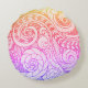 Doodle Design - Dieses runde Kissen zeichnet sich durch ein farbenfrohes, Wirbles Design in Rosa-, Orange- und Gelbtönen aus. Das Muster ist detailliert und symmetrisch und verleiht ihm einen dekorativen Look. Die Kanten sind in Blau, Rosa und Gelb gefärbt, was eine lustige und moderne Touch verleiht.