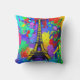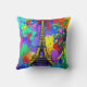 Eine farbenfrohe und lebendige Darstellung des Eiffelturms in Paris, Frankreich. Das Bild ist eine Mischung aus Realismus und abstrakter Kunst, wobei der Eiffelturm im Mittelpunkt steht. Der Hintergrund ist mit hellen Farben und geometrischen Formen gefüllt.