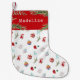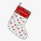 Fügen Sie Ihrem Urlaubsstil eine festliche Touch mit diesem maßgeschneiderten Strumpf hinzu! Mit einem spielerischen Muster aus Weihnachten, Ziergegenständen, Hirschen und Grünpflanzen auf weißem Hintergrund und einer kräftigen roten Manschette, die mit einem Namen personalisiert ist. Ideal für einen fröhlichen und hellen Urlaub!