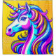 Dieser Duschvorhang hat ein buntes Einhorn darauf.