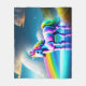 Farbenfrohe Niedliche Einhorn, farbenfrohe Puzzle mit lila, weißem Einhorn mit Regenbogen in Fantasiewelt für Kinderzimmer und Babyzimmer.