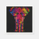 Party Servietten mit dem Bild eines bunten Elefanten vor einem schwarzen Hintergrund.