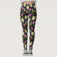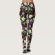 Fantasy-Blume in magenta, weiß, orange und lila auf einem schwarzen Hintergrund schaffen ein schönes und elegantes Paar Leggings.