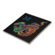 Hier ist eine einzigartige Kachel, die voller Farbe und Spaß ist! Es zeigt einen skurrilen Drachen in verschiedenen Farben, darunter Orange, Grün, Blau, Gelb, lila und mehr. Oben verlassen ist Ihr Monogramm in Aquablau. Das Drachenbild und der Text werden auf einem dramatischen schwarzen Hintergrund platziert.