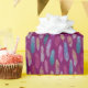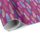 Farbenfrohe Federn: lila Hintergrundmuster. Geschenkpapier