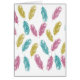Feathers Muster in aquamarin, magenta, goldgelb auf weißem Hintergrund.