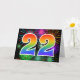 Die Vorderseite dieses aufregenden, lustigen und lebhaften Grußkartendesigns weist ein farbenfrohes, von feierlichen Feuerwerken inspiriertes Muster auf, zusammen mit der Zahl "22" mit einem farbenfrohen Regenbogen-inspirierten Farbverlaufsmuster auf schwarzem Hintergrund. Im Inneren befindet sich eine personalisierte Begrüßungsnachricht, oder man könnte sie löschen und leer verlassen werden, wenn eine Nachricht von Hand geschrieben werden soll. Eine Grußkarte wie diese könnte eine lustige Art sein, jemandes zweiundzwanzigsten Geburtstag zu feiern, oder vielleicht das zweiundzwanzigste Hochzeitstag eines Paares, oder ein anderes 22. Ereignis. [~Z0000342]