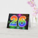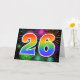 Die Vorderseite dieses aufregenden, lustigen und lebhaften Grußkartendesigns ist mit einem farbenfrohen, feierlichen Feuerwerk inspiriert, zusammen mit der Zahl "26" mit einem farbenfrohen Regenbogenmuster auf schwarzem Hintergrund. Im Inneren befindet sich eine personalisierte Begrüßungsnachricht, oder man könnte sie löschen und leer verlassen werden, wenn eine Nachricht von Hand geschrieben werden soll. Eine so genannte Grußkarte kann dazu verwendet werden, eine Nachricht zu senden, in der jemand seinen sechsundzwanzigsten Geburtstag, oder vielleicht den sechsundzwanzigsten Hochzeitstag eines Paares, oder eine andere 26. Veranstaltung, bestätigt wird. [~Z0000342]