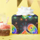 Farbenfrohe Feuerwerke + Regenbogenmuster "49" Eve Geschenkpapier