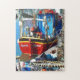 Farbenfrohe Fischerboote am Kai Puzzle