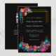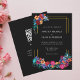 Diese Hochzeitseinladung bietet ein lebendiges mexikanisches Fiesta Blumenthema mit farbenprächtigem, schwarzem Set. Die Vorderseite zeigt fette und lebhafte Blumenakzente, ergänzt durch elegante geometrische Details aus Gold, die festlichen Charme mit modernem Komfort verbinden. Die Rückseite enthält einen QR-Code für UAWG-, Veranstaltungshinweise- und Registrierungsinformationen, der eine praktische und technisch versierte Touch hinzufügt. Ideal für Paare, die ihren besonderen Tag mit einem lebendigen, stilvollen und kulturell inspirierten Design feiern möchten.