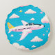 Farbenfrohe Flugzeuge unter Cartoon Wolken Rundes Kissen