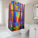 Dieser farbenfrohe Duschvorhang hat ein schönes Walddesign.