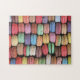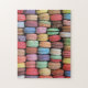 Diese süßen französischen Meringue-Konfektionen werden mit einem leckeren Zentrum gefüllt, um ein köstlich süßes Keksbrot zu kreieren. Dieser gestapelte Regenbogen der Farben bedeutet verschiedene Leckereien des Geschmacks! Dieses Bild fühlt sich leicht "gemalt" an, wenn man genau hinschaut.