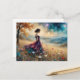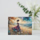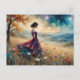 farbenfrohe Frau auf dem Hügel der Blume Postkarte