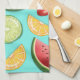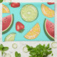 Farbenfrohe Früchte auf blauem, süßem Sommermuster Geschirrtuch