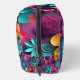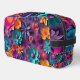 Toilettenbeutel mit coolem 3D-Muster. Helle und farbenfrohe Blume mit einem coolen Stil, der wie Papierausschnitte aussieht. Spaß und fantasievolles Design.