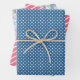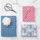 Vergnügen farbenfrohe Verpackungspapier Set. Mit niedlichem Schneemann-Muster, Streifen und Punkten in Grün, Blau und Rosa. Verziertes, trendiges, modernes und skurriles Hipster-Design für Winterfreunde und Dezember-Urlauber. Diese originelle, elegante, stilvolle und perfekte Geschenkpackung bringt Freunden und Familie ein Lächeln auf die Gesichter, wenn sie ihre Weihnachtsgeschenke im Dezember entfesseln.