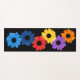 Farbige Gänse/Blume auf schwarzem Hintergrund (gelb, orange, rot, hellblau und dunkelblau, lila) Yogamattel