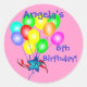 Ein heller, lustiger Ballonbuket fliegt durch die Luft, verbunden mit einem blau leuchtenden Stern und einem roten Band. Personalisieren Sie diese farbigen Aufkleber mit beliebigem Namen und Geburtstagsalter. Auf einem hellrosa Hintergrund wird "Angela's 8. Geburtstag!" gezeigt. Ändern Sie ganz einfach den Text und ändern Sie sogar die Farbe sowie den rosa Hintergrund. Klicken Sie einfach auf Anpassen und dann auf "Farben", um es zu ändern.