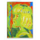 Auffallendes Bild eines Mädchens auf der Oberfläche. Farben: gelb, grün, orange, blau, weiß.