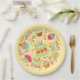 Say Happy Birthday und feiern Sie stilvoll mit einem Party mit diesen lustigen und whimsy feminine Happy Birthday Papier Teller. Die whimsy Kunst bietet einen Geburtstagskuchen mit Kerzen umgeben von Kuchen Kuchen, whimsy Wörter "Happy Birthday", Punkte und Bänder auf einem farbenfrohen gelben Hintergrund. Diese originelle Kunst stammt vom Stoffdesigner Phyllis Dobbs. Andere Farben sind rot, rosa, gelb, orange und grün. Koordinieren Sie sich mit Aufklebern und anderen Produkten für ein fröhliches Party zum Geburtstag!