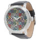 Farbenfrohe Geometrie Pinwheel Schwarz Armbanduhr