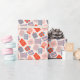 Vergnügungs- und skurrile Verpackungspapier zur Darstellung von Geschenkboxen mit Bögen und Mustern in Rot, Rosa, Blau und lila Farben.