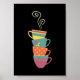 Farbenfrohe gestapelte Tee-/Kaffeebecher, dampfend Poster