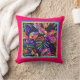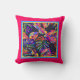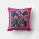Ein tolles tropisches Design mit gemalten Blätter auf schwarz, gelb und blau an einem Himbeerpfropfen mit rosa Kissen. Fügen Sie in jedem Zimmer des Hauses einen farbigen Pop hinzu, oder wählen Sie das "Outdoor"-Material, und sie machen einen bunten Pool oder Innenhof Kissen.