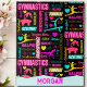 Farbenfrohe Girls Gymnastik Glossary Typografy Design, beladen mit leuchtenden Farben, reizvolle Schriftart, Gymnast Silhouetten auf dem Boden, Balanceblasche, Gewölbe und Bars. Mit vielen gängigen Gymnastikwörtern, die jeder Gymnastiker kennen wird. Auch winzige Doodle-Herzen, Blume und andere kleine Details, um dieses Design mit Freude überall behalten! Dieses beliebte Design ist jetzt in der 2.0 Musterversion erhältlich und kann mit dem Namen Ihres Gymnastes personalisiert werden!