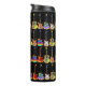 Farbenfrohe Gitarrenmuster auf schwarzen Monogramm Thermosbecher