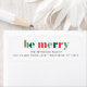 Ein modernes Rücksendeetikett mit farbenfrohen, roten und grünen Botschaften.
